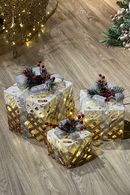 CSD572-KAI0 Gift Boxes 3/set w/fairy lights