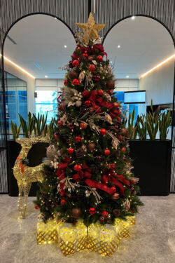 Studies have shown that businesses and stores decorated for the Christmas season create a positive feeling in staff, customers and visitors. They feel more at home. People feel more relaxed and friendly, productivity improves and shoppers tend to buy more at the stores. Takes a bit of planning, but it’s all worth it.